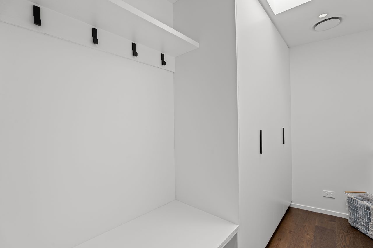 A double internal-access garage, dedicated laundry, and ample storage complete the home’s practical elements.