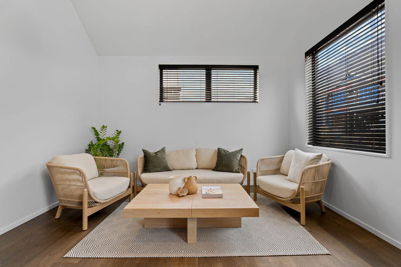 Accommodation is carefully considered, with a generous master suite featuring a walk-in wardrobe and ensuite, while two additional bedrooms are serviced by a stylish family bathroom.