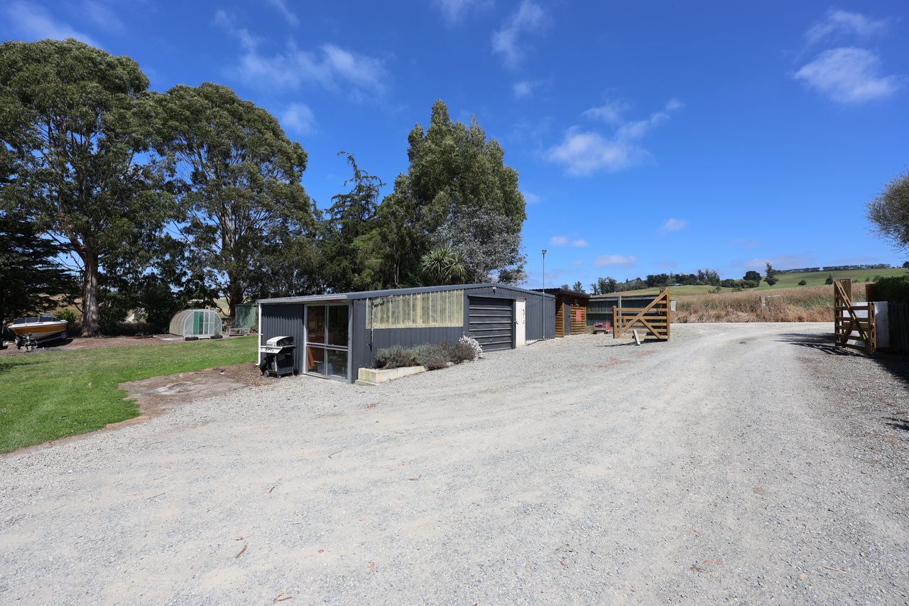 319 Woodburn Road, Herbert, Oamaru WaitakiSet on a 1.1 ha block, deer fenced and protected from the ill winds by trees which wrap around and shelter the house, orchard and gardens, creating its own wee microclimate ensuring fresh fruit and veggies are a given.
